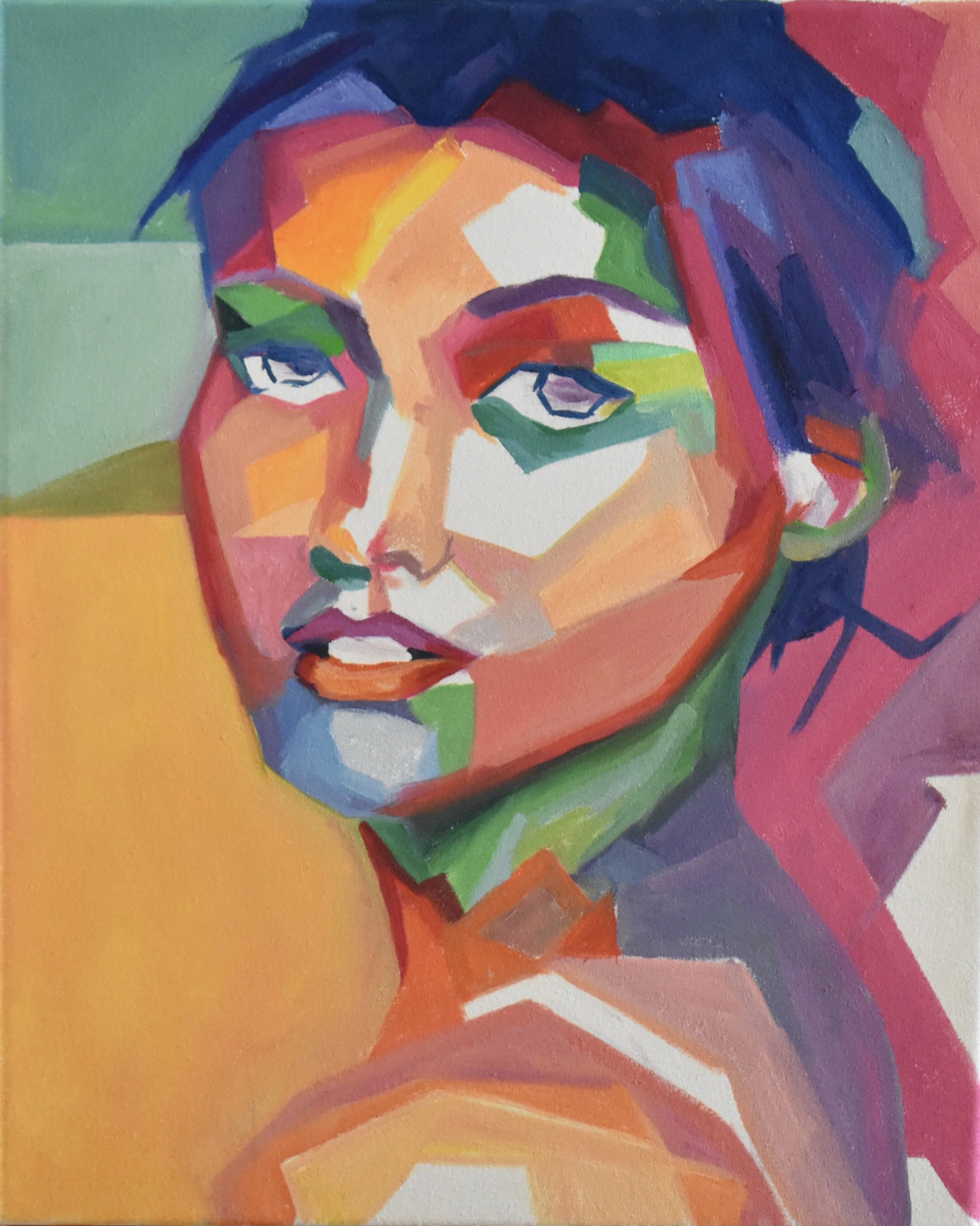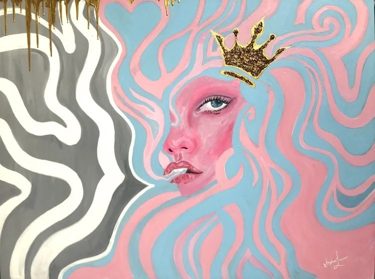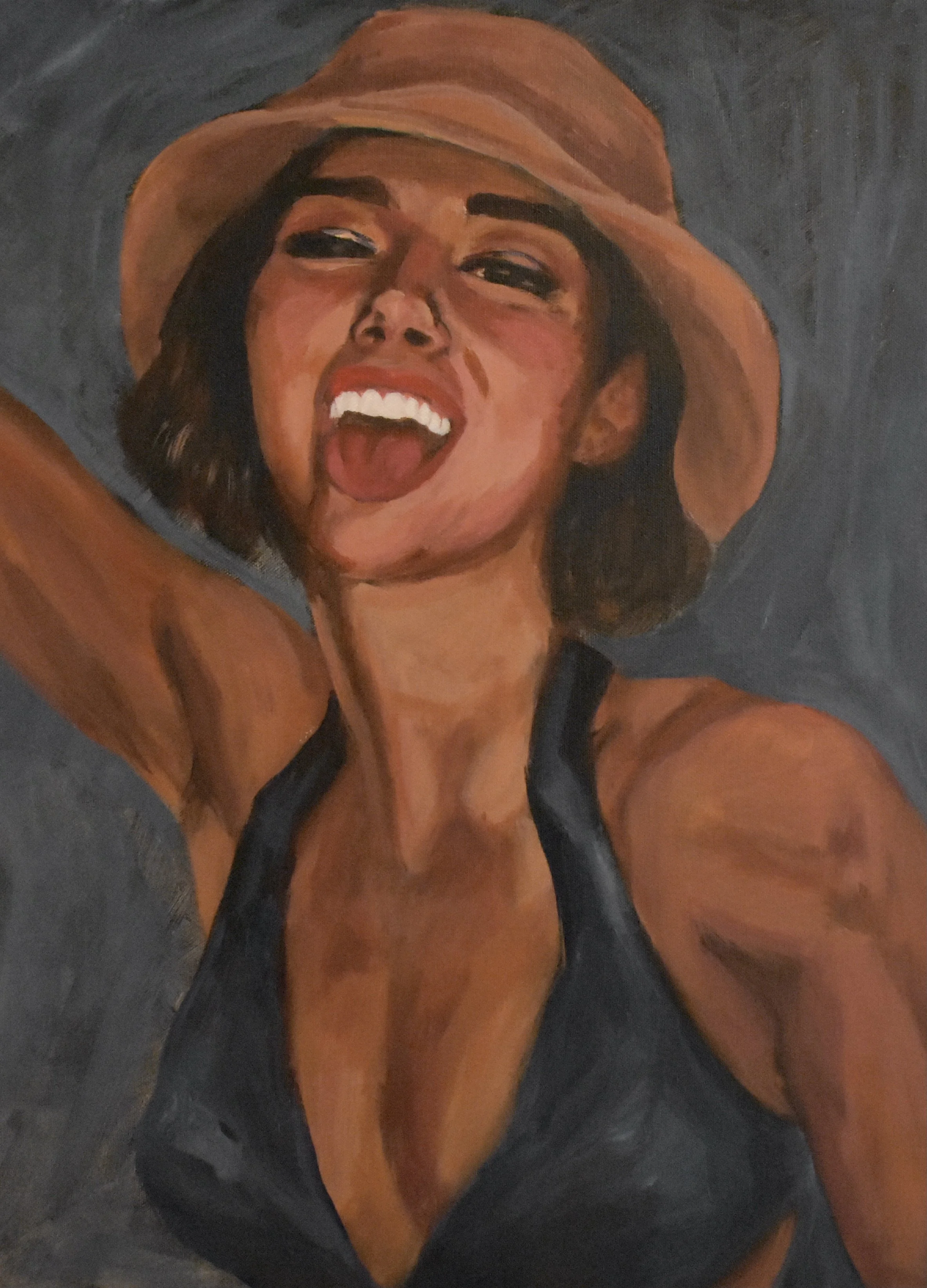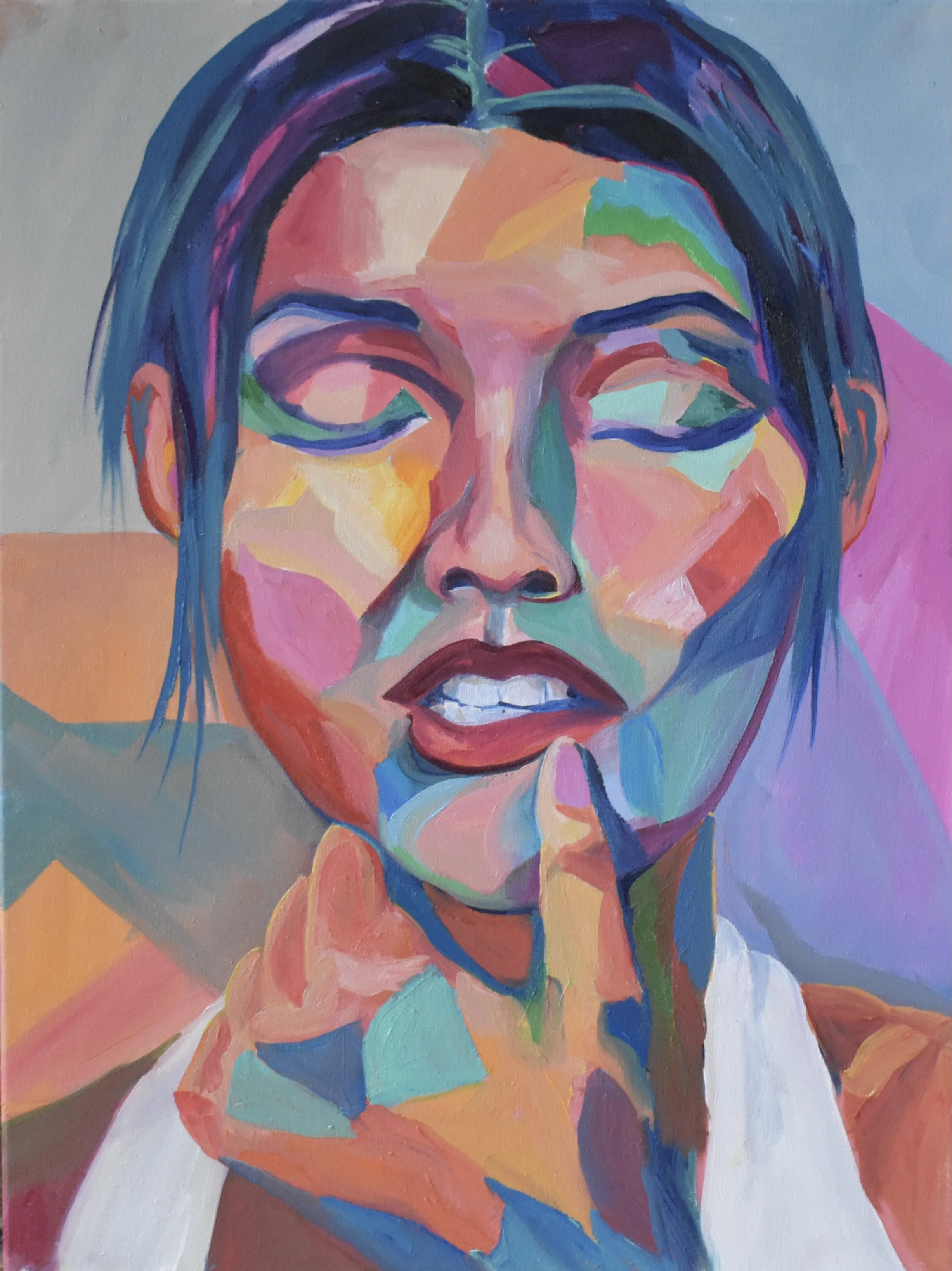 Artist Statement: They told her that she was too confident. They told her that she was too shy. They told her that she was too big, too small. She cares too much, she doesn’t care enough. She asked for it, she’s too reserved. Society keeps telling women who to be, and who to show up as. Society tells her to blend in, because if she doesn’t blend, she shines!