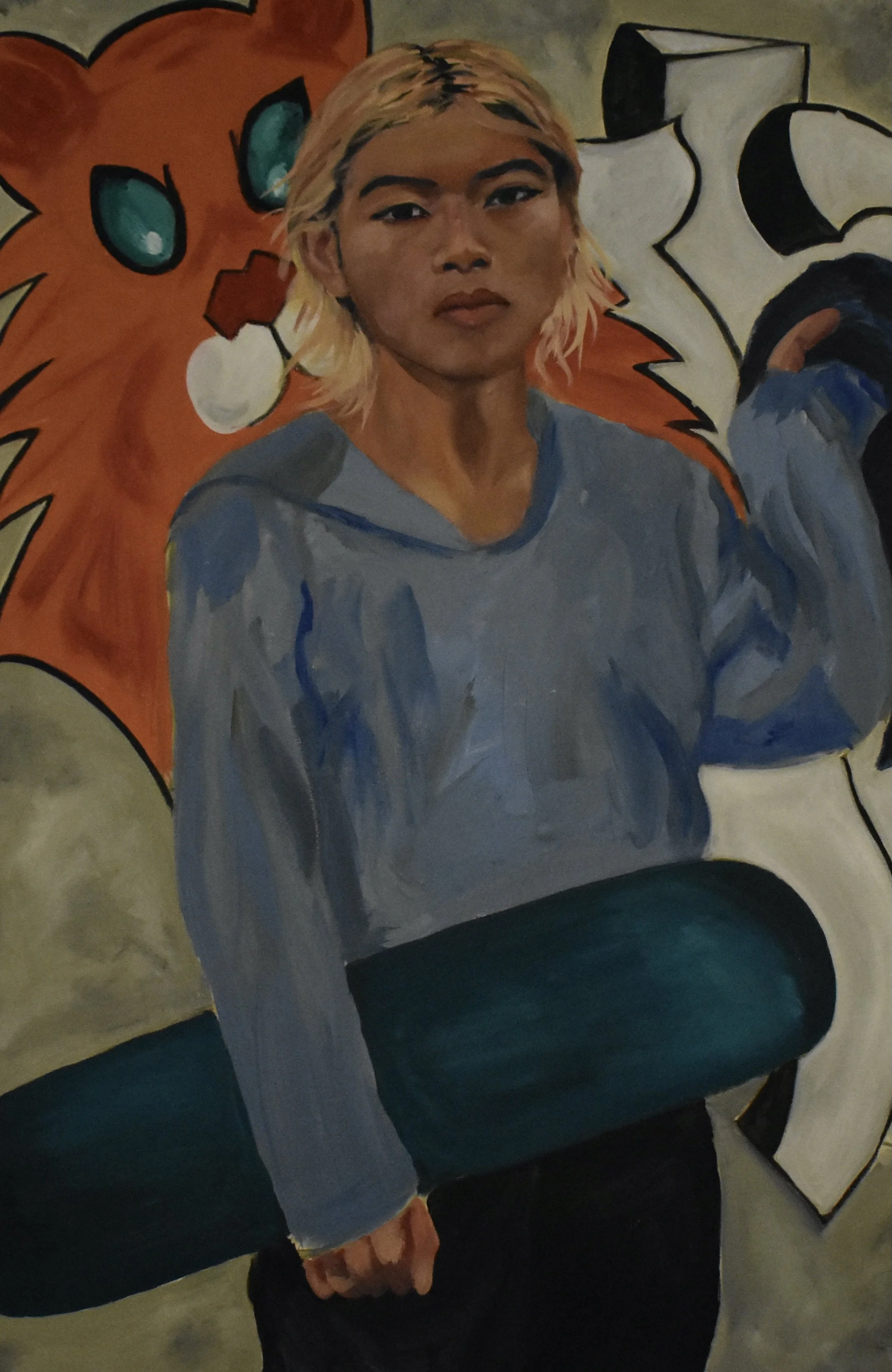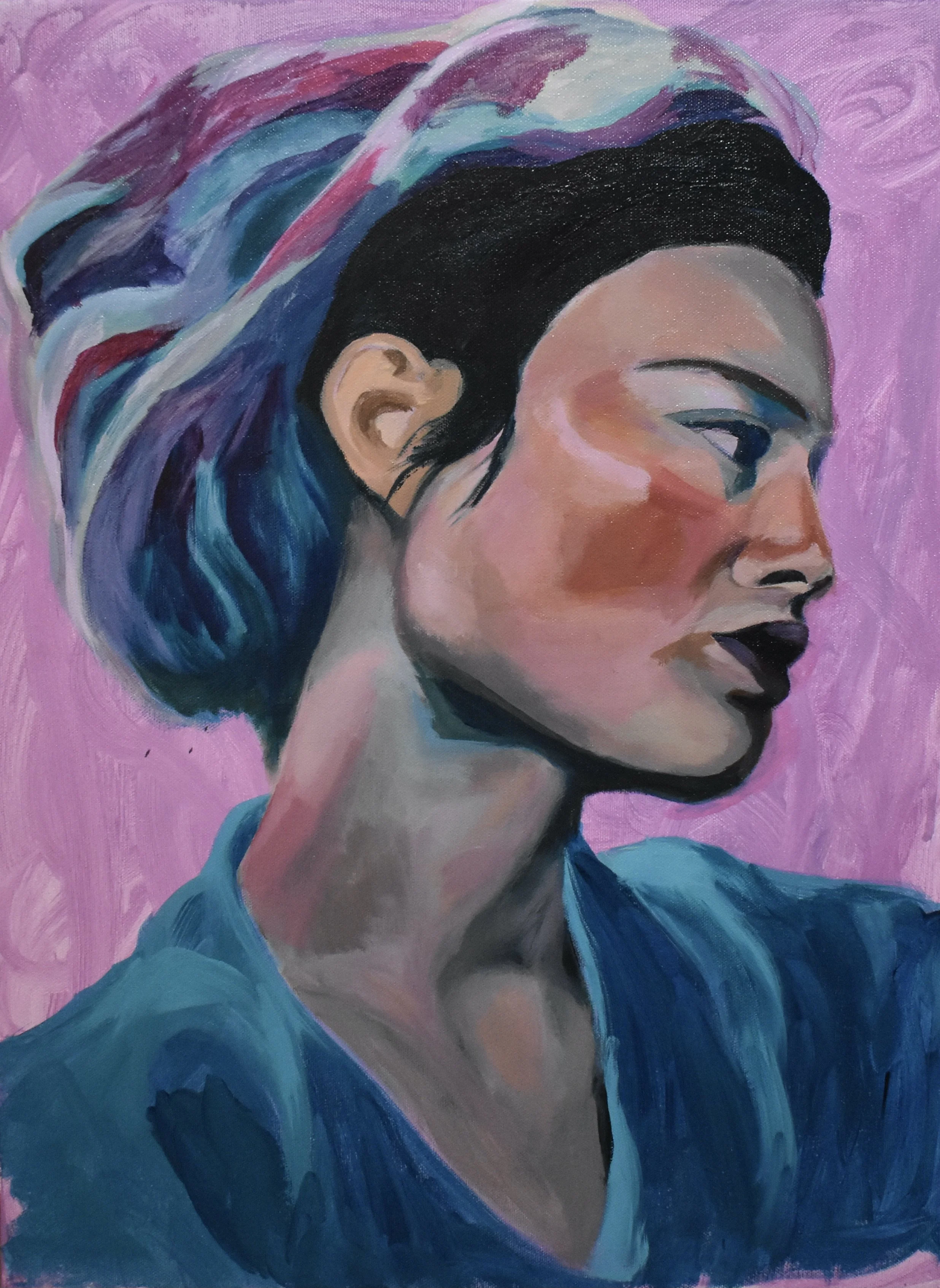Artist Statement: A portrait of a figure separated but interested in their own culture, an adventure in self discovery imagined with bright and lively colors.