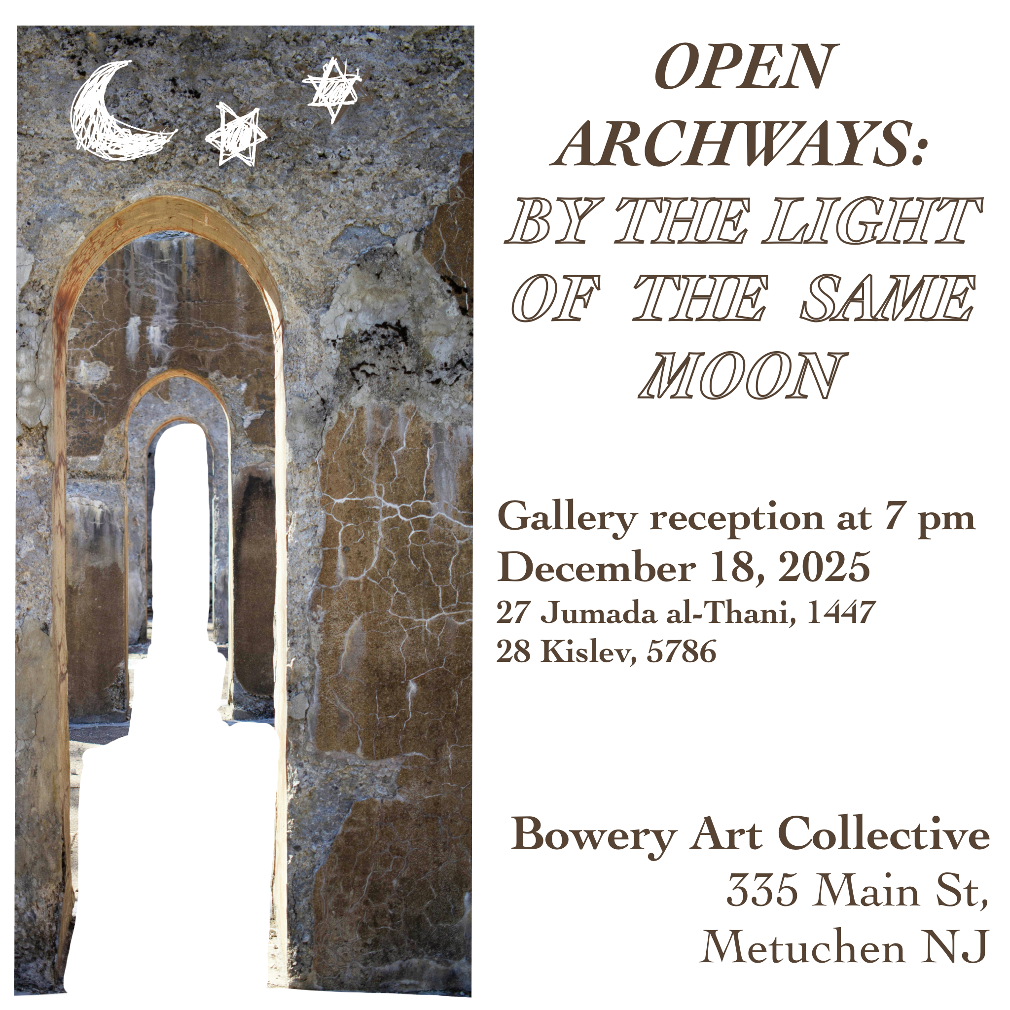 The exhibit Open Archways presents this shared cultural tapestry: the intersections between Muslim and Jewish culture that begin with the use of the moon as our clock.
